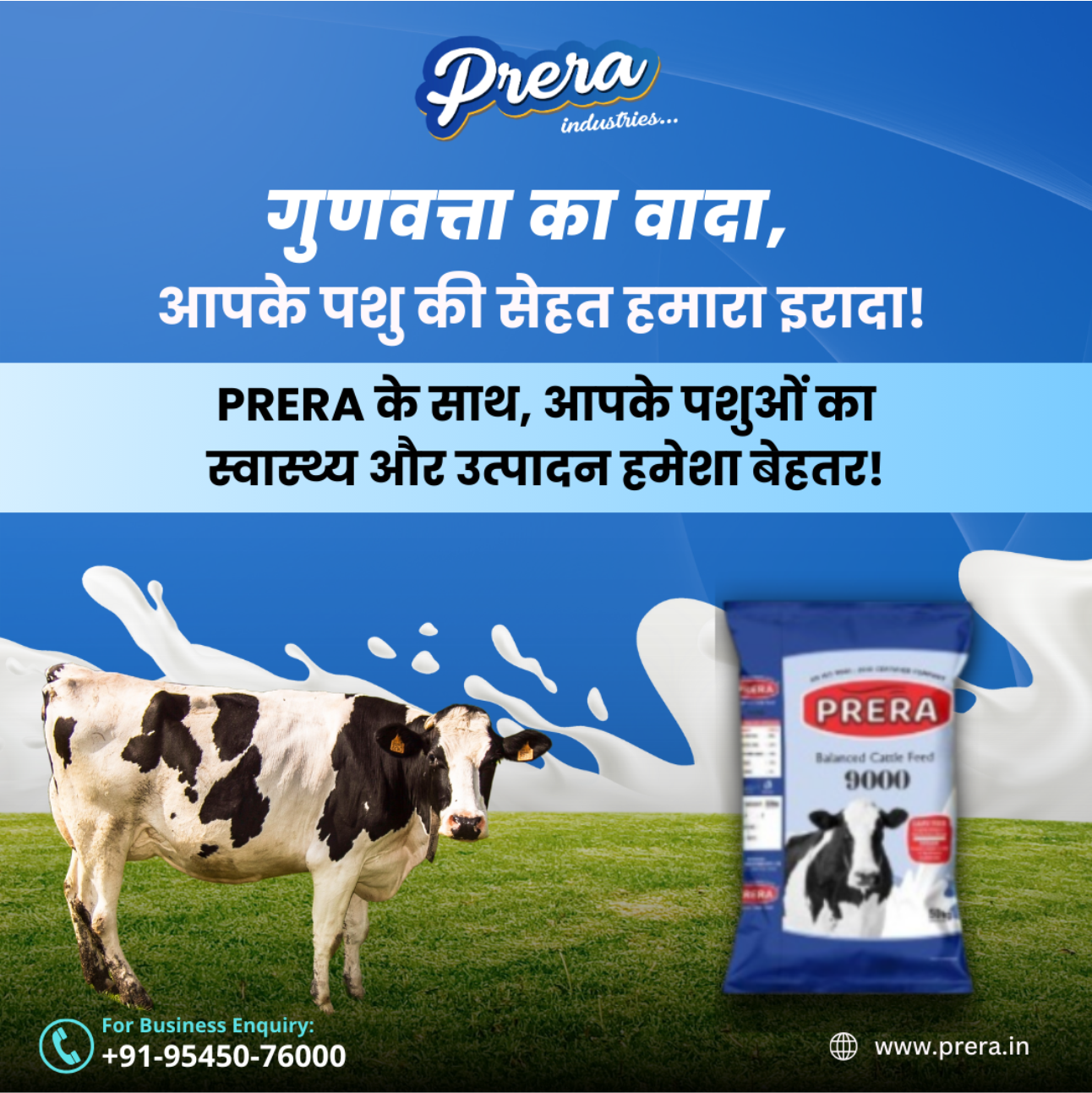 Prera Balanced Cattle Feed 9000 is a premium-quality, nutrient-rich feed specially formulated to enhance the health, productivity, and overall well-being of dairy and farm cattle. It provides a balanced combination of proteins, essential vitamins, minerals, and energy-boosting ingredients to support higher milk yield, better digestion, strong immunity, and improved fertility.